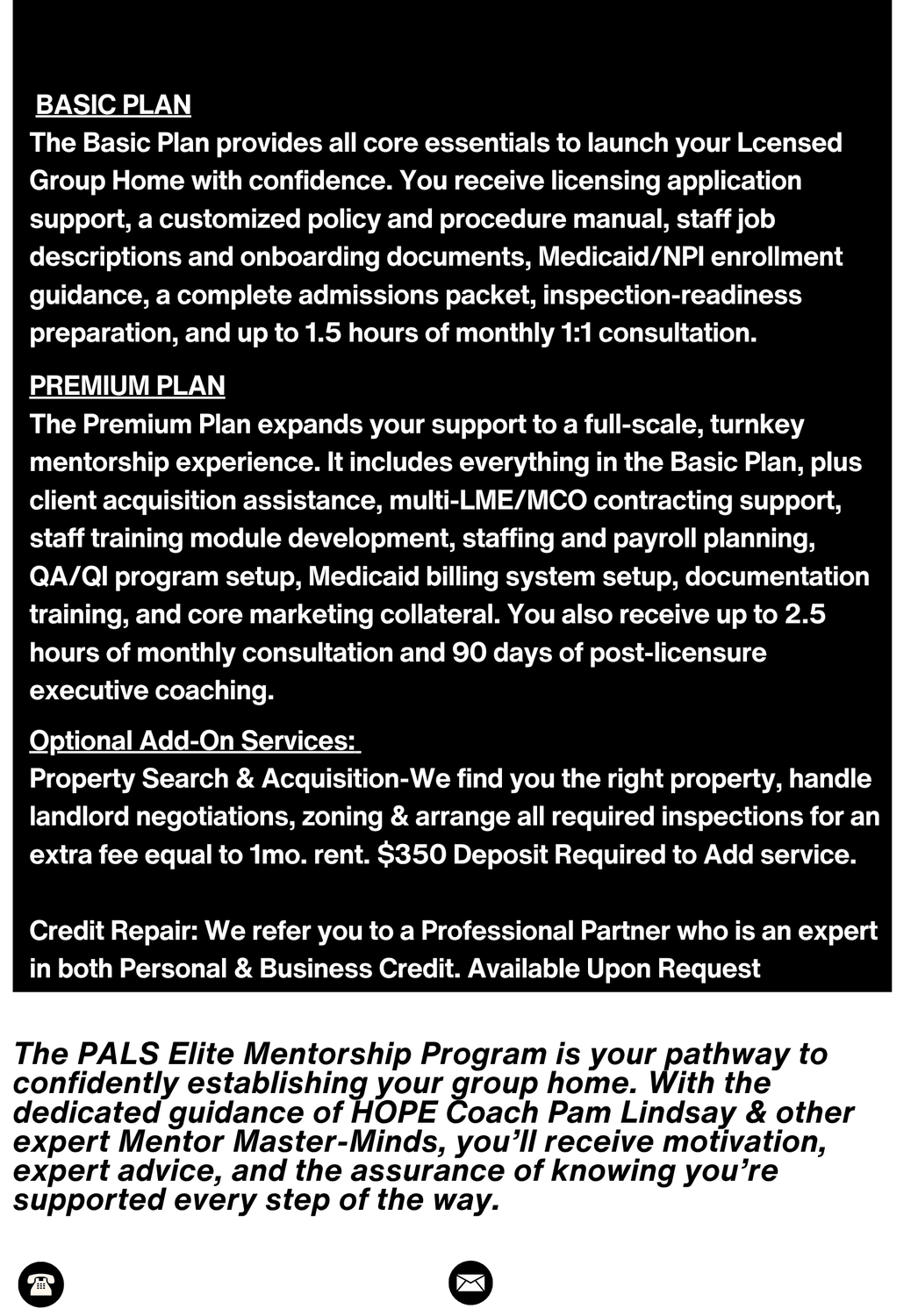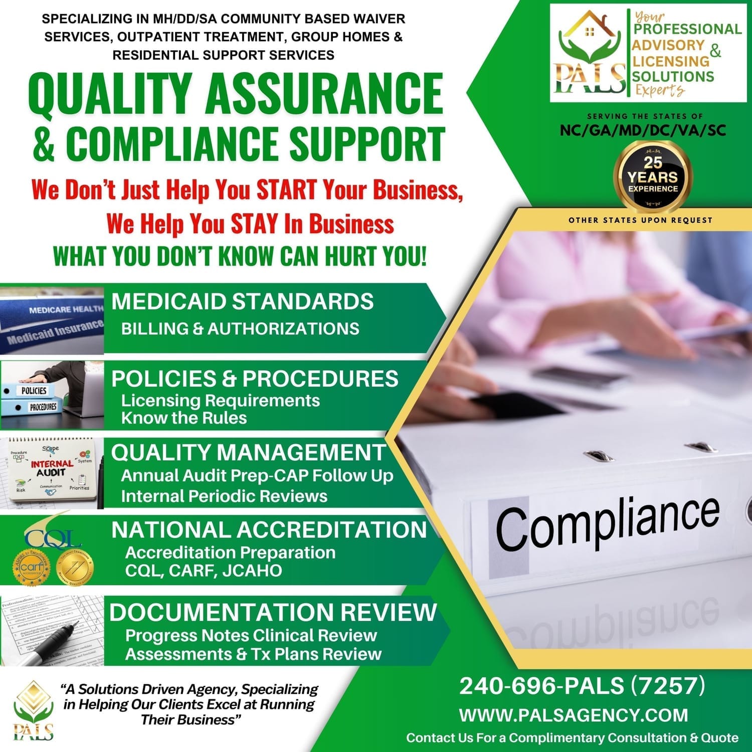 So whether you're just getting starting on your journey to becoming a Group Home owner or already have a thriving Outpatient Mental Health practice, PALS Team of Professional Consultants offers the highest quality services, to meet your specific business needs and at the most competitive rates in the industry. You simply can't beat the value we bring, along with the top notch service we provide.