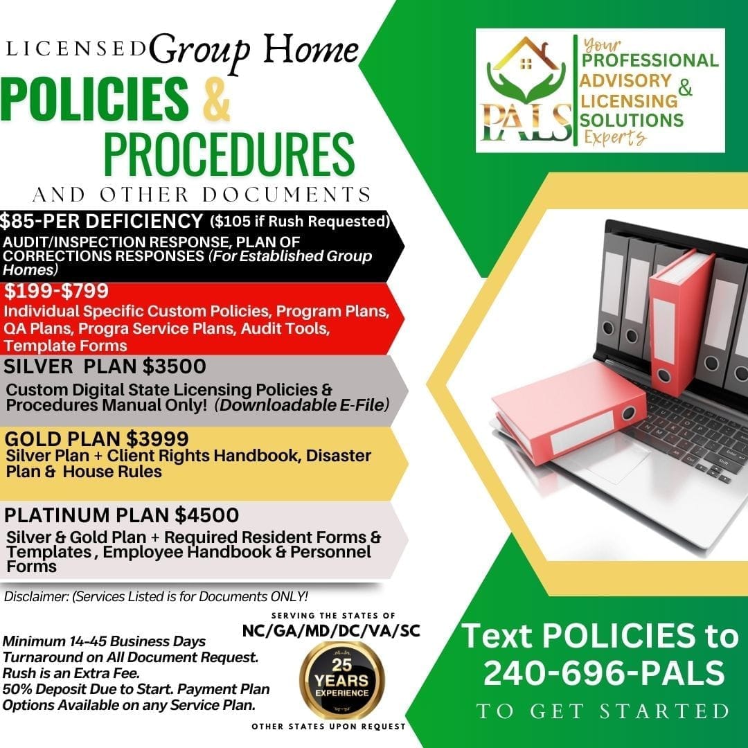 At PALS Agency, we recognize the critical importance of state-approved policies and procedures. Our expert team works closely with your organization to develop customized policies that align with your mission, values, and the unique services you provide. Each policy is designed to promote the well-being and individualized care of those you serve. We offer ongoing reviews and updates to ensure your organization remains current and responsive to changes in the field. Our comprehensive services help businesses develop, review, and revise policies and procedures, ensuring regulatory compliance and empowering your organization to provide impactful services.